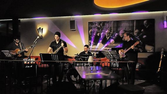 saxes guitar bass drums |